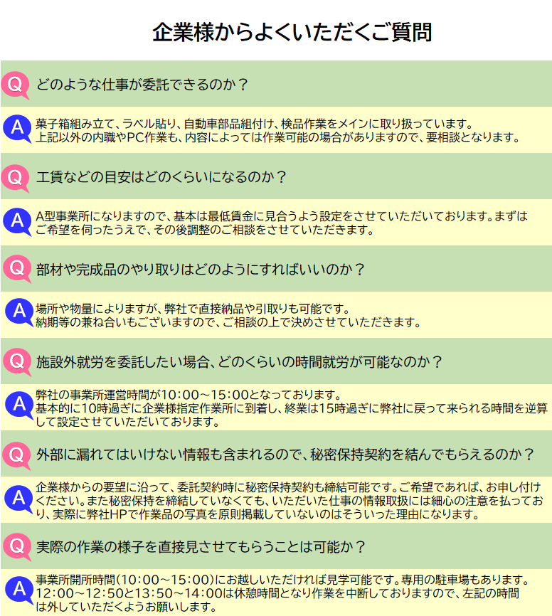 就労継続支援A型事業所かなえでは、企業様からの内職やデータ入力といった作業依頼・相談を随時受け付けております。